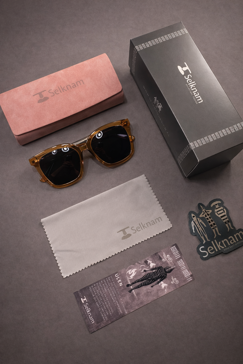 Ulen es un modelo de anteojos de sol premium para mujer, inspirado en la energía ágil y expresiva del espíritu Ulen dentro de la cosmovisión selknam.