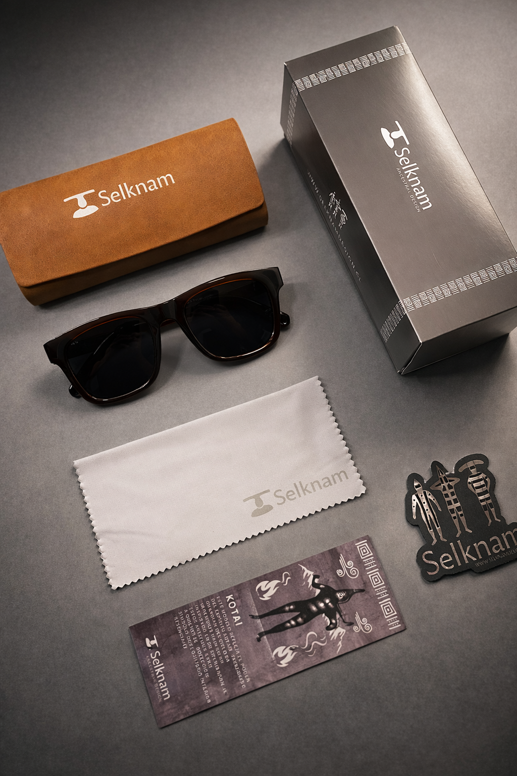 Cada modelo Selknam Eyewear se entrega con una presentación cuidada, pensada como parte de la experiencia de la marca.