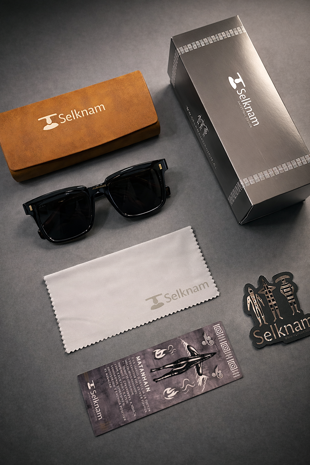 Cada modelo Selknam Eyewear se entrega con una presentación cuidada, pensada como parte de la experiencia de la marca.