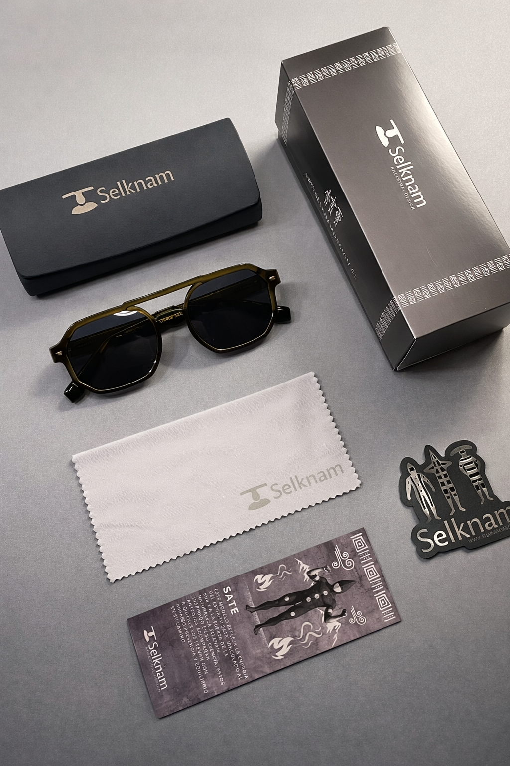 Cada modelo Selknam Eyewear se entrega con una presentación cuidada, pensada como parte de la experiencia de la marca.