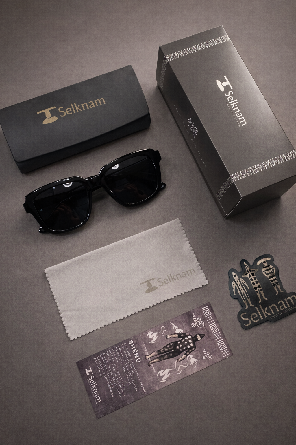 Cada modelo Selknam Eyewear se entrega con una presentación cuidada, pensada como parte de la experiencia de la marca.